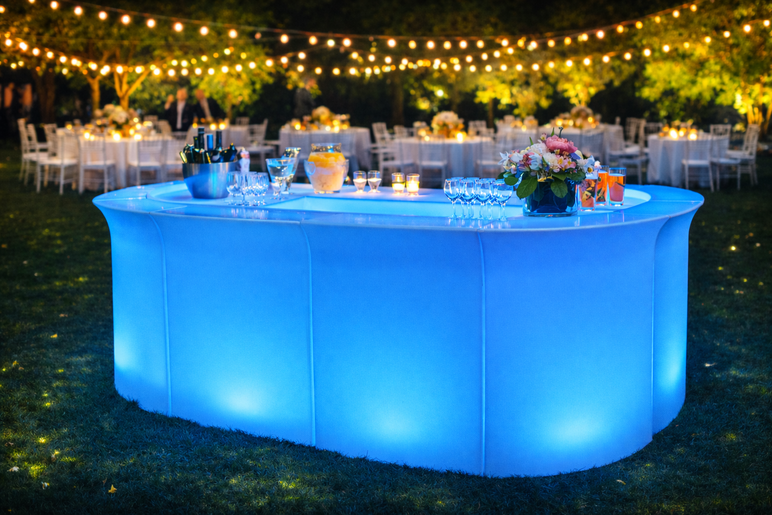 Bar modular, versatil și modern, perfect pentru crearea unui ambient spectaculos la evenimente.