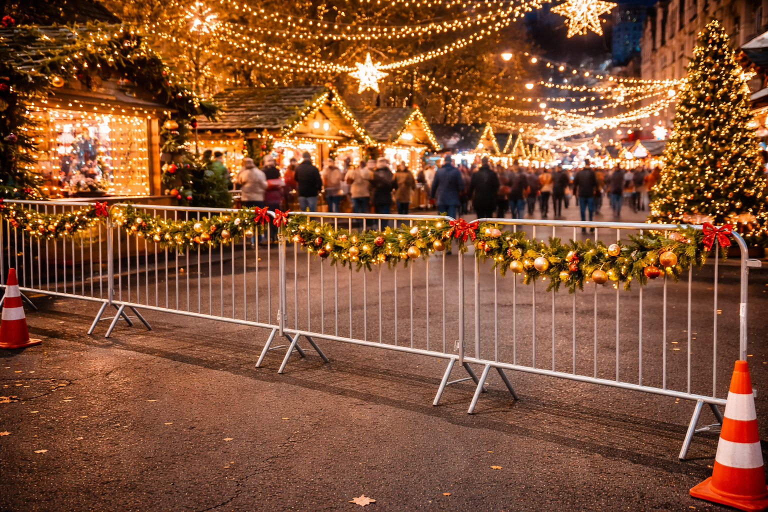 Gard tip jandarmerie – barieră de securitate 2,5 × 1,1 m, ușor de asamblat, ideală pentru delimitarea și direcționarea publicului la concerte, festivaluri, târguri sau evenimente sportive.
