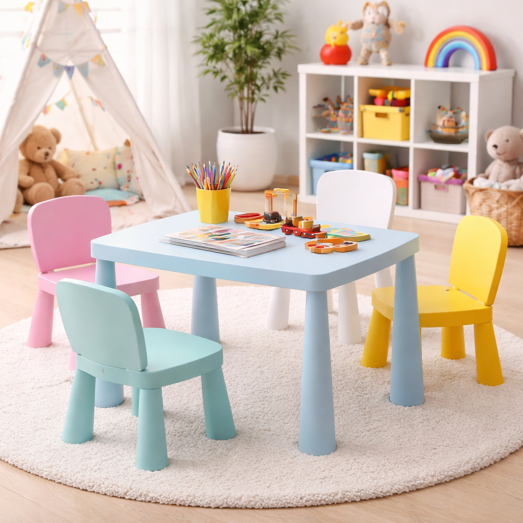 Masă copii pentru interior/exterior, dimensiuni: 77 × 55 cm.